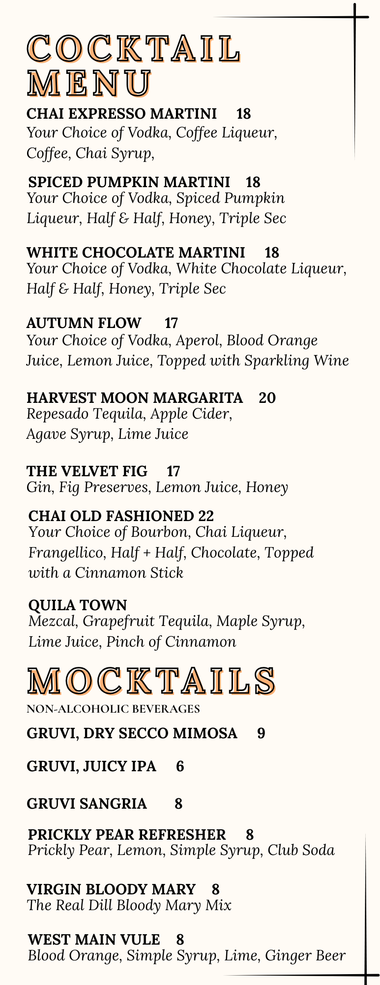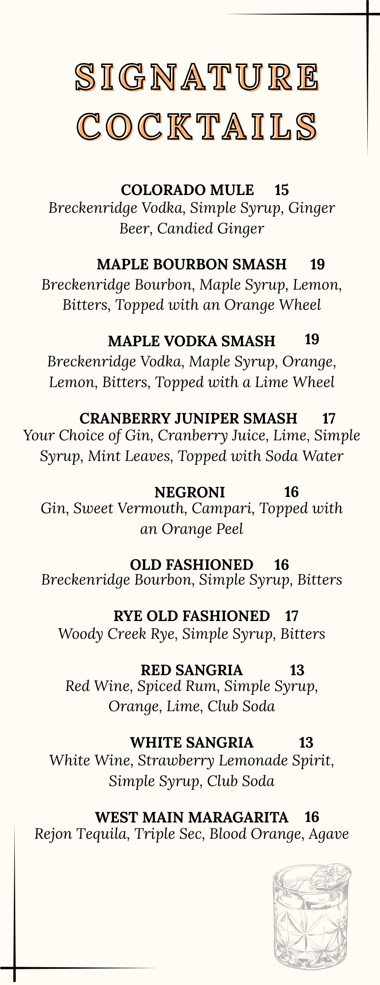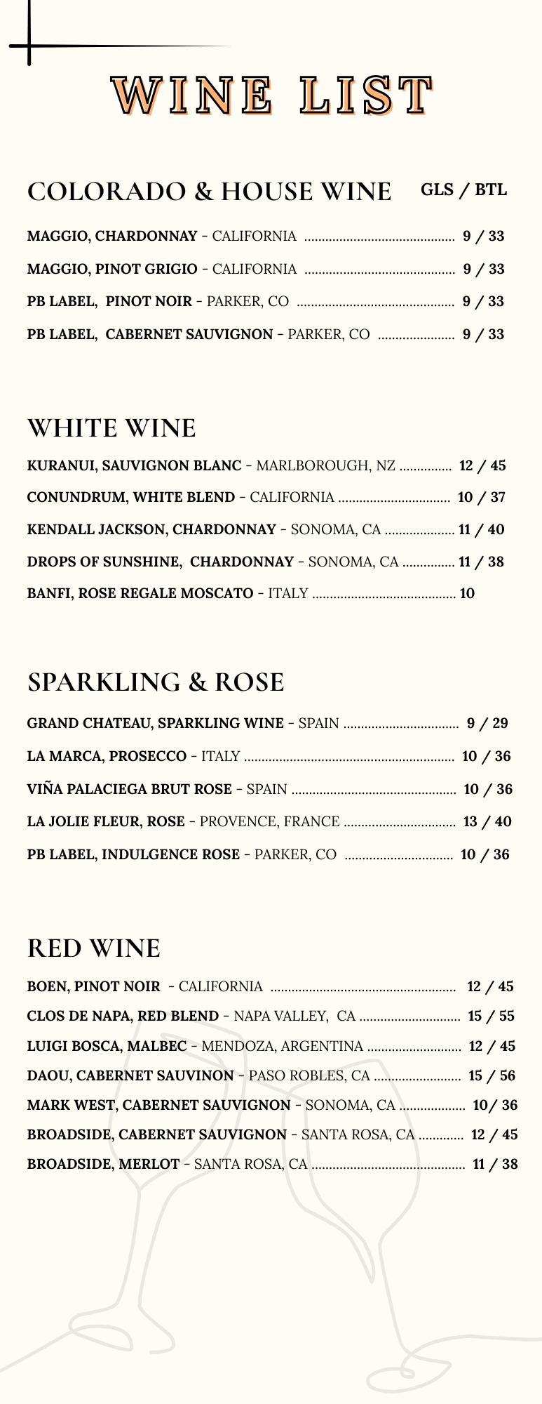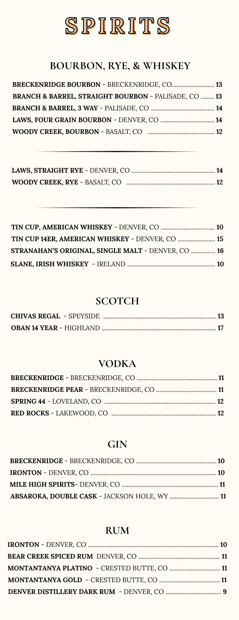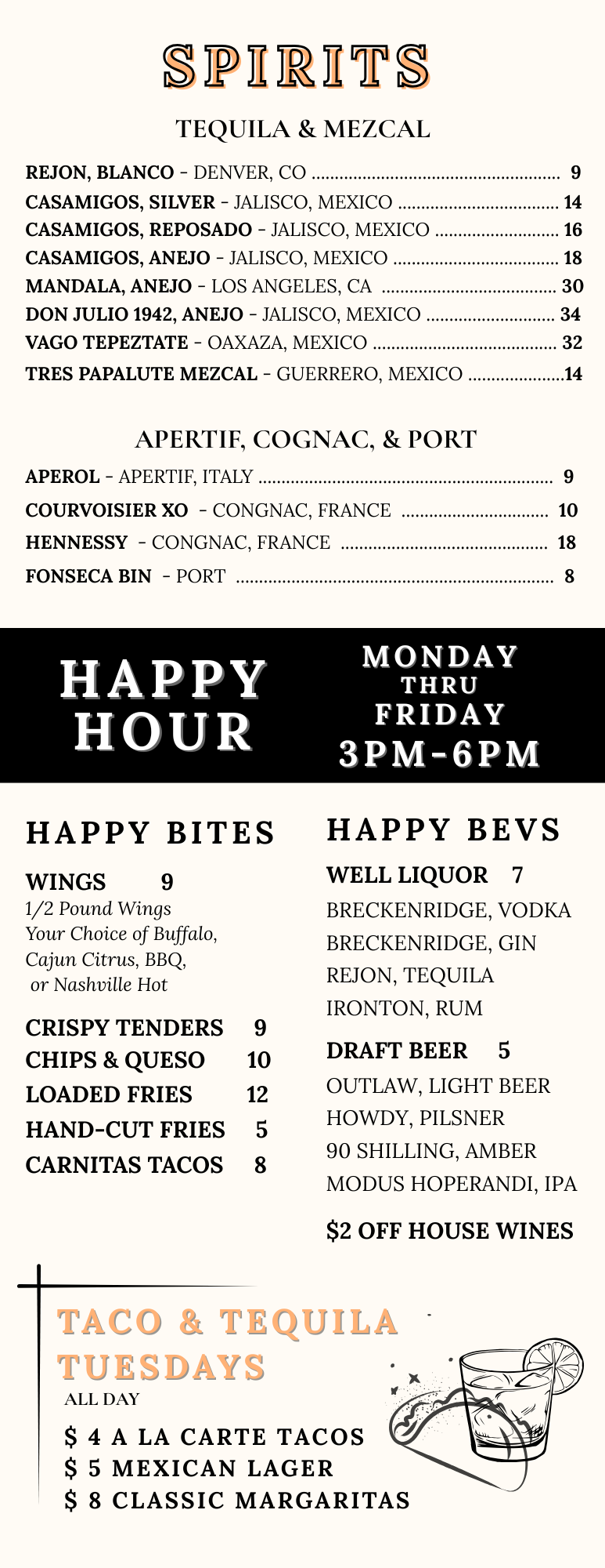 Cocktails, Spirits, Wine